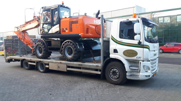 Hitachi ZX170WT-5 mobiele kraan afgeleverd aan hoveniersbedrijf Versteeg in Harskamp. Deze machine is compleet uitgevoerd met een SMP st18 draaikantel stuk van Pladdet. Wij wensen firma Versteeg veel draaiplezier toe met deze prachtige kraan.